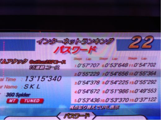 OutRun2SPではスコアネーム「SKL」で主にタイムアタックのTunedカテゴリにてアタックしてます。