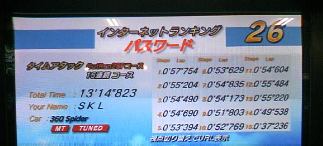 あうとらんのにっきOutRun2SPが大好きな人の落書き帳。PAGE | 291 290 289 288 287 286 285 284 283 282 281 | ADMIN | WRITE 2011.03.30 Wed 02:30:33 Tuned/MT 015 またこの地で再奪還! インターネットランキング(2位→1位) 西葛西のキャッツアイより、前回より”215縮めての更新。 即日の奪還にも挫けず、停電にも負けずに続けてきた甲斐がありました。 停電実施後にも新セガ、八千代キャッツアイ、西葛西と営業時間を調べるのも兼ねて遠征を重ねていましたが、その最中にスイッチが。 西葛西のキャッツアイでは節電の一環として店内照明を半分落とし、またインカムの少ないゲーム機も電源を切るなどしていましたが、ここのお店でのアウトランは4台とも稼働していました。 それもこれも、日頃よく対戦していくお客さんが多い証なのでしょうか。 個別のステージタイムを見ると、2B 3A 5B 5C 5Eで ”1xx前後かそれ以上のロスがありました。 特にロスが大きかったのは5Bと5Cで、5Bは2セク右ドリフトで路肩をかするわ、5Cでは2セクの左右にびびって普段使わないドリ切りを使用、無事抜けたもののラインが乱れ、その後の左で路肩に乗るわ、終盤へさしかかるにつれ大惨事とは言わない程度の失敗が。 が、それでも捨てずに今回更新出来た大きな要因。それは・・・ 4Dジャングル2セクの最終右コーナーをグリップで抜けてやったからー!><自己ベ更新ヒャッハー 思い返せば、序盤のロスを3B・4B・4C・5Aから自己ベスト寸前のタイムで順調に巻き返し、5Cは3セク前に若干の速度が低下したため、そのおかげで3セク最初のグリップ抜け成功率が上がっていたようにも思えますし、続く5Dでは5B5Cの失敗を取り戻そうと躍起になって攻めれたのか、この記事を書いてて初めて自己ベスト更新に気がつくなど、まるで恐れを知りませんw 逆に、走り切ったあとに損だな、と思ったのは5A。他店の遊びが多いアンダーステアに慣れてしまっていたためいつも通りのインベタが出来ず、この回は所々インから離れたり路肩に一瞬のったり。むしろ、よくこれで3セクのグリップ戻しが決まったなと思うくらい、この日の5Aはまともに走れていませんでした。 そんな、筺体の選り好みが激しい私の15連再更新に一役買ってくれた本気台と、周辺の照明が落とされて集中しやすくなったお店の環境に、ただただ感謝。 MIDさんのストックが無いかが、今一番の怖い所ですが~><; PR TrackbacksTRACKBACK URL : CommentsComment Form |