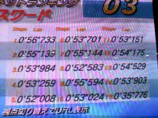 軽くSTGをやってから見に行くと、参加予約済みのSAT.さんがすでにプレー中でした。 今日も、それがまるで当たり前の様に絶妙なハンドルさばきで雑魚車をかわして ライバルカーをぶっちぎりまくり。 もうORモード素人の自分には目の前の光景が凄すぎて 何がすごいのかの判断基準が分からなくなってしまいました><; さて自分は右台で新T/AT・・・やろうと思ったんですが、無意識のうちに旧15連を選んでしまい、 そのままズルズルと旧Aコースに照準が合わさっていました。 なんという長野の魔力・・・これはもう逃れられない ^q^ 捕まった以上はいたしかたないので、気持ちを切り替えて5ステ開始。 Aコースは現在申請してある記録の中では一番「精度」の低いタイムでしたので ここぞとばかりに隣のSAT.さんから気合を吸収させていただき繋いでみたところ、 まず4分18秒937が、その数回後に880、テーブルで二人でゆっくりしたのちに873が出ました。 この時点でランキングに照らし合わせると、YK社長さんとRUI@さんの同タイムにぶら下がる形での5位。 しかしここでもう少し頑張れば一気に二人抜いて3位になれるのでは? というわけで考えるより先に実行する形で再開。 しかし今日はすごく暑い。Tシャツ一枚でも最近はクソ寒くて上着はおろうかと考えてしまうほどなのに・・・ あ、どう考えても隣で激熱プレーしてるSAT.さんの影響です。 本当にありがとうございました! 途中、集中力が薄れ始めてしまいどうしようもない状態になりかけましたが、 こういうときこそ糖分を補給するといいと聞いたので、早速バニラモナカをペロリ。 アイス自体食べない人なんで、久々に口にする美味しさも手伝って復活! 一方で、今日SAT.さんは某コースで首位の記録を保守できたので目的を達成できたとのことで 8時頃に無事、撤退されました。 またゆっくりしていってね!!1 自分はというと、SAT.さんから「どツボにはまる」と言われたのと、 突然始まったレイアウト変更のどたばたで少し冷めたのと、消化不良なのが合わさって 楽しい時間だけどモヤモヤしている微妙な感じになってしまったため 気分転換にまたSTGを・・・って、誰かやってて空かないじゃん><;;;; 結局、他にやるものもないので再開・・・! 隣から消えた台の分だけ空間がポッカリ空いてるけど再開・・・!! すると再開1発目で1A2Aと良いペースで抜けたのに、城壁で痛恨の060落ち、 しかし次の某草原でかいしんのいちげき985!これはいい自己べ。 これで勝つる! だめでした。orz しかしここでは諦められない。 だってここで帰ったらそれこそ半端な気持ちで2クレが終わってモヤモヤしたままだから。 そんな負け犬根性をゲームにまで持ち込みたくないので、 7時にきた「夕飯はおいしい焼き肉のお知らせ」を「満足のいく記録が出るまで」ガン無視決定。 ここの2台の中で一番遅い左分岐のMIDさんゴーストすら抜けずにヤキモキしまくってましたが・・・ ついに出ました! 2人抜きのはずがまさかの3人抜き・・・でも更新したので、これでやっと・・・帰れます><;;; 最近は一人プレーすることが多くて、正直モチベが死にかけてましたが、 今回2クレイベントのお知らせを受けて野田からすっ飛んできてくれたSAT.さんのおかげで タイムアタックの楽しさと熱さが、それはもう燃えたぎる勢いで思い出せましたw 遠路はるばるこちらまで出向いて、しかもゆっくりしていってくれたSAT.さんに感謝です! ↓以下はゆっくり記念です↓ 2008.12.10 Wed 18:58:37 恐らく今年最後の2008.12.03 Wed 21:33:37 新感覚2008.11.28 Fri 22:40:12 山頂未制覇今日は本来なら月曜日が祝日で3連休だったんですが、