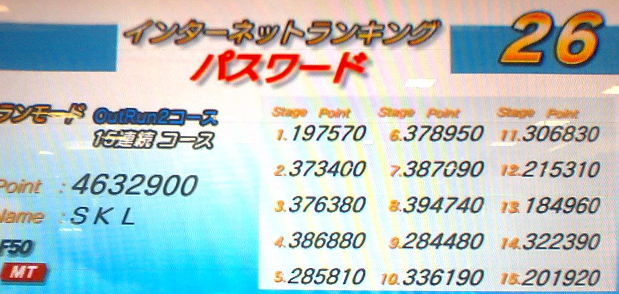 OutRun2SPではスコアネーム「SKL」で主にタイムアタックのTunedカテゴリにてアタックしてます。