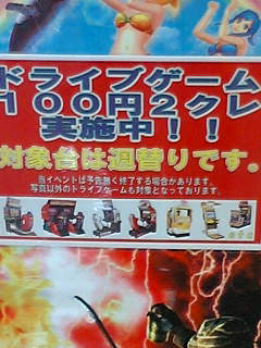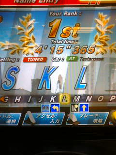 ペットボトルの「葉の茶」買って戻ったらもう回って来てたり 母さんが買い物したい症候群に見舞われてショッピングモール行っちゃったり その近くのゲーセンのOR2DXが15連消えてたから解禁して貰ったり 目が乾燥しすぎて痛かったりと右往左往した土曜日でしたが、 午後には予定通り六チャリへー 湾岸の隣に配置されてからと言うもの、おやつどきまでは湾岸に群がる中学生と 後ろの太鼓がうるさくてアタックに集中なんて出来やしません。 ぼちぼち新15連T/ATでウォーミングアップしつつ時間が過ぎるのを待つようにふらふらしていたら いつのまにか静かになったので本戦開始。 15連も調子がよかったもののやる気がなく、短時間で集中力の続きやすい5ステDコースに。 6クレ突っ込んで前の記録をギリギリで超えられない回が2回あり、 先週ほど出ないにしろ良い走りになってきたので続行すると・・・ 2Bの3セクS字で切り返したら右の路肩に若干乗り上げたものの、0.732で抜けたので気にせず3B 2セクの急なS字で復帰時294km/hに落としたものの、その後の3セクが決まって0.698 次の4C、全セクターともギリギリのイン取りと速度の底上げに成功し0.461と文句なし! そして、ランカー殺しで有名な悪夢のミルキーウェイ 最初の左のドリフト起動タイミングをずらしてしまったものの誤差の範囲、アドリブで修正して抜ける。 ここは最初に稼いだ速度が後にも響くからよりいっそう気を使いたいところで次の左をフェイントで突破 さあさあさあさあ盛り上がってまいりましたところでミルキー名物悪夢の最終複合コーナー! 最後の最後で壁をこするだけで全てが水の泡に葬り去られるこのリスク、このスリル! マゾだからこそ味わえる名スポットですね! フェイント成功!切り返し成功!更に切り返して復帰の壁接触なし!(・∀・)イイ! さあ注目のトータルタイムは!? IR Tuned/AT Dコース2位 結論から言うと時給300円さんは速すぎる・・・・ プレイヤーの少ないT/ATでぬるま湯に使っている気分を吹き飛ばしてくれる カリスマ的存在だと思います、ガチで。 今のままなら理論値全繋ぎでやっと僅差に持っていけるところかな? 毎回0.050~0.100のばらつきがある1Aをなんとしてでも安定させ、コンマ8前半以上で抜けたいところ。 未だに大カーブでのイン狙いでびびってますw ちなみにこの台、前々からブレチカがたびたび起きていたものの 減速もドリフト自動起動もないのでスルーしていましたが、 この2週間で毎回ゴールまでに2,3回は点灯、点滅するようになってしまい これ以上悪化しても困るし、場所が場所だから人が寄ってきて気が散るしw 帰り際にメンテをお願いしてきました。 パッと見の症状はブレーキの接触不良に見えるので、分解する気満々だったし 明日には直っているといいな。 PR 2007.12.14 Fri 14:56:43 レジャラン追試受けたあとの午後に小遣いもらえたので、