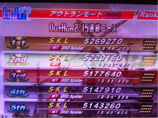 OutRun2SPではスコアネーム「SKL」で主にタイムアタックのTunedカテゴリにてアタックしてます。