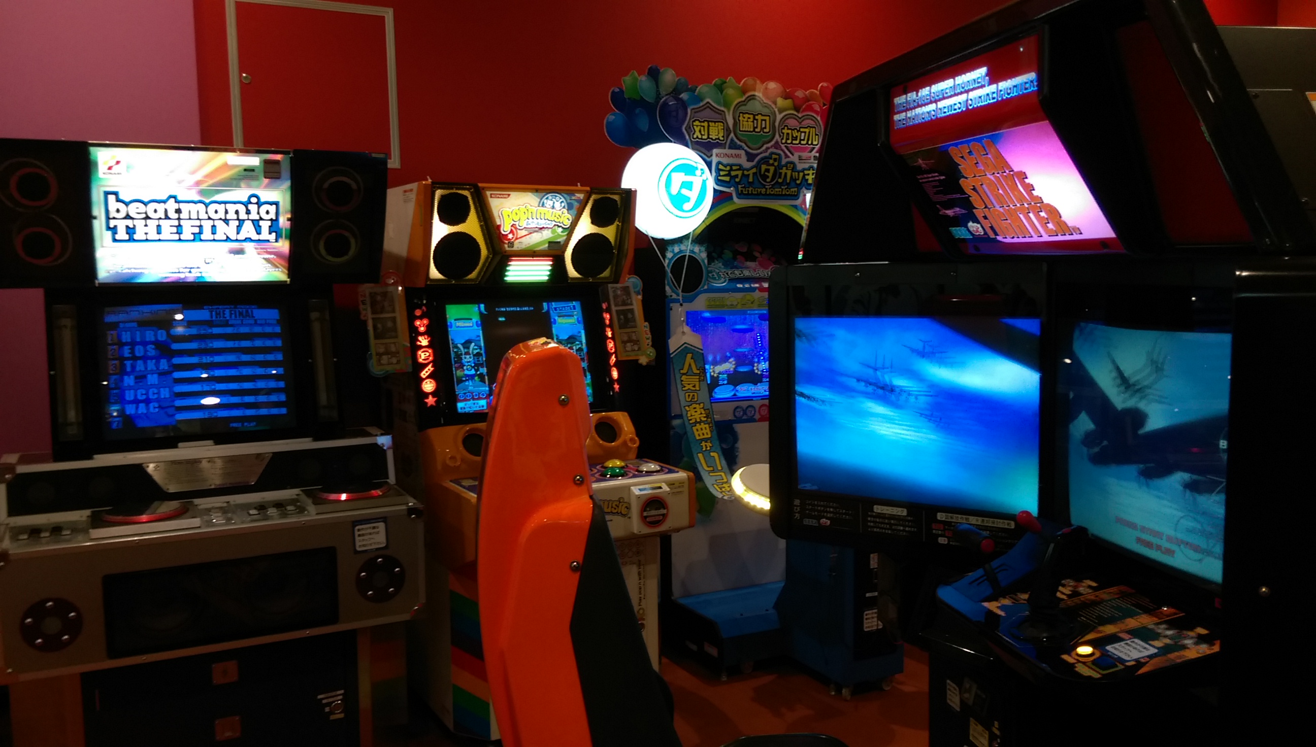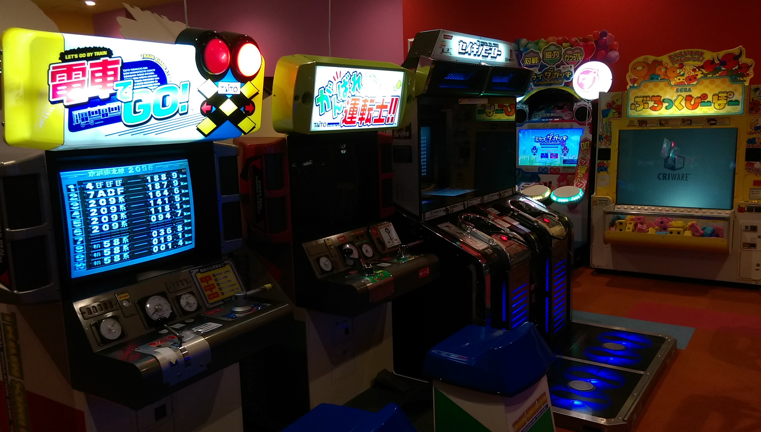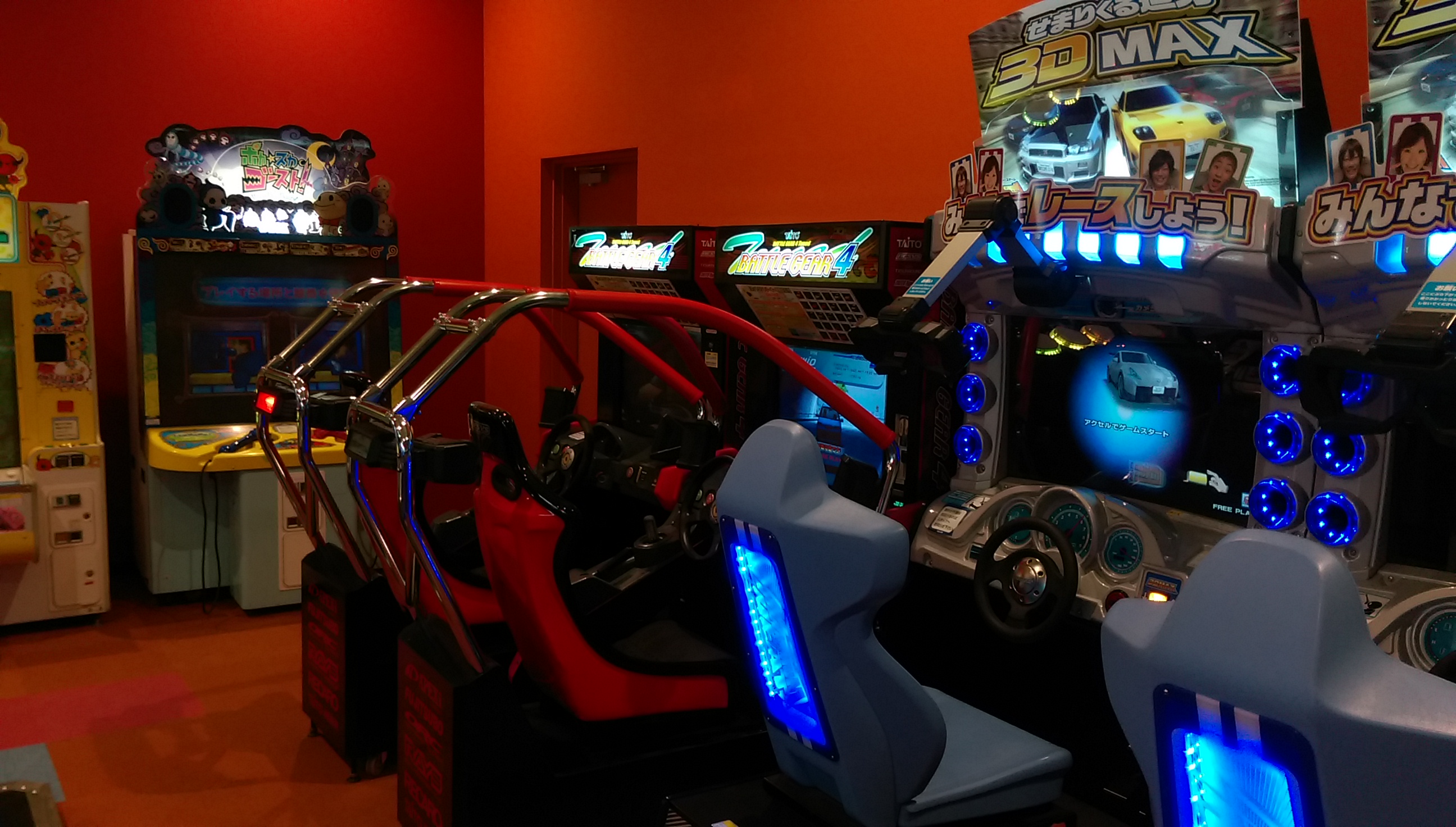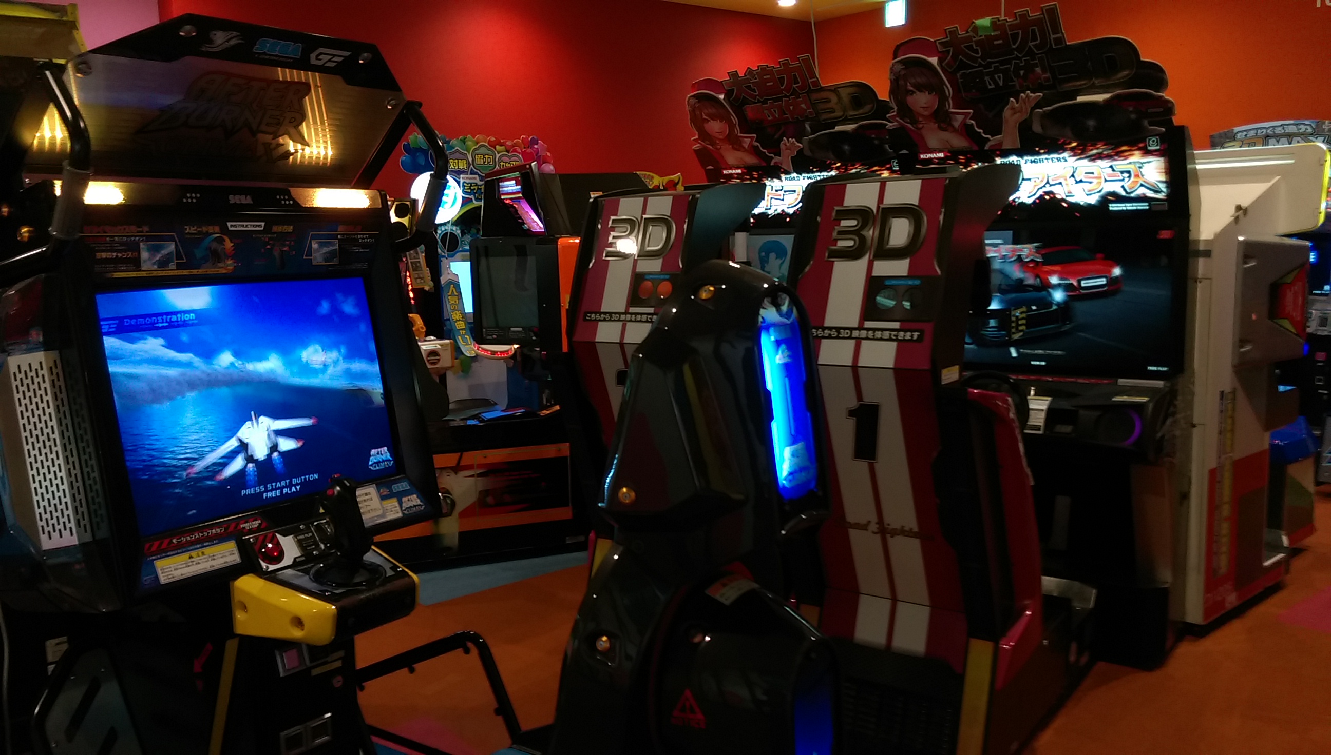 今回スポッチャの中にあるとは一ヶ月前から事前情報で知ってましたが、まさかDXまで置いてあるとは驚きの一言でした。さっとさんの筐体シリアルデータベースによればSPは初見(北海道R1白石店と連番)ながら、DXは三重県津市からやってきたとのこと。 筐体のコンディションとしてはSP2台ともシートのレールが無制限に下がってしまうのと、右側が勝手にアクセル全開で走り出すくらいで全体的には想像以上に良かったと言えます。 栗橋ほどではないですが休憩に使えそうなスペースもとい、俺をダメにするソファ。 個人的には更にこの2機種までもが同じフロアで遊べると言うのもとてもポイントが高いですね。 特にF-ZEROはSPに手を出す前に家庭用のF-ZERO GXを3年半近くやりこんでおりましたので、ただでさえ数が少ないのに稼動1年ちょっとで続々と姿を消していったDX筐体が近所でまたお目にかかれるのにはまさに感無量。筐体の派手な作りとパワードリフトから進化した振り子の可動部も備え、ゲーセンの体感ゲームとしても圧倒的存在感。音ゲーはもうお腹一杯なのでまた大型体感ゲームがリリースされる時代が来るといいのですが。 OutRun2SPとF-ZERO AX、どちらも2016年4月現在千葉県内で唯一の稼動店ですので大事にしていきたいと思います。 ~~~翌日~~~ 22日~24日までプレオープンで誰でも2時間500円につられてまた行ってまいりましたところ、今はなき地元の筐体そっくりな感触のステアで森を軽々抜けれてしまい自己ベストの全一から一秒落ち以内で繋がりました。長らくホーム不在でしたが今日からこいつがメイン台です、よろしくね。 以下、他にも珍しそうなタイトルが目白押しでしたので参考までに。 CommentsComment Form |
