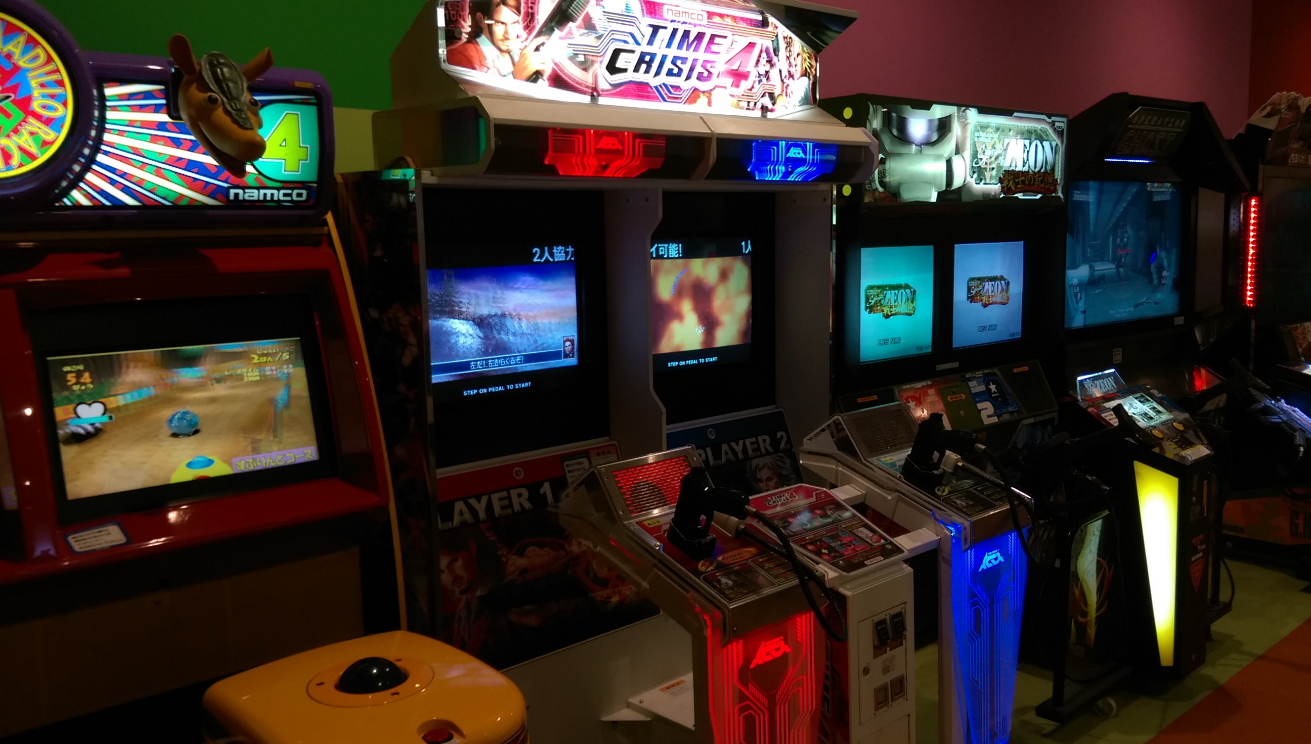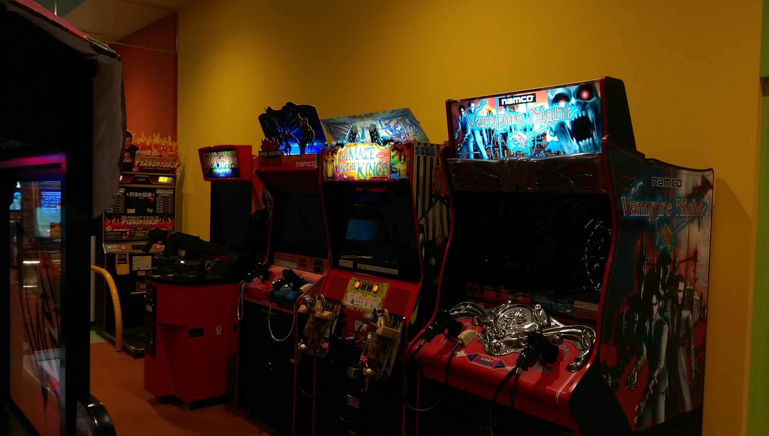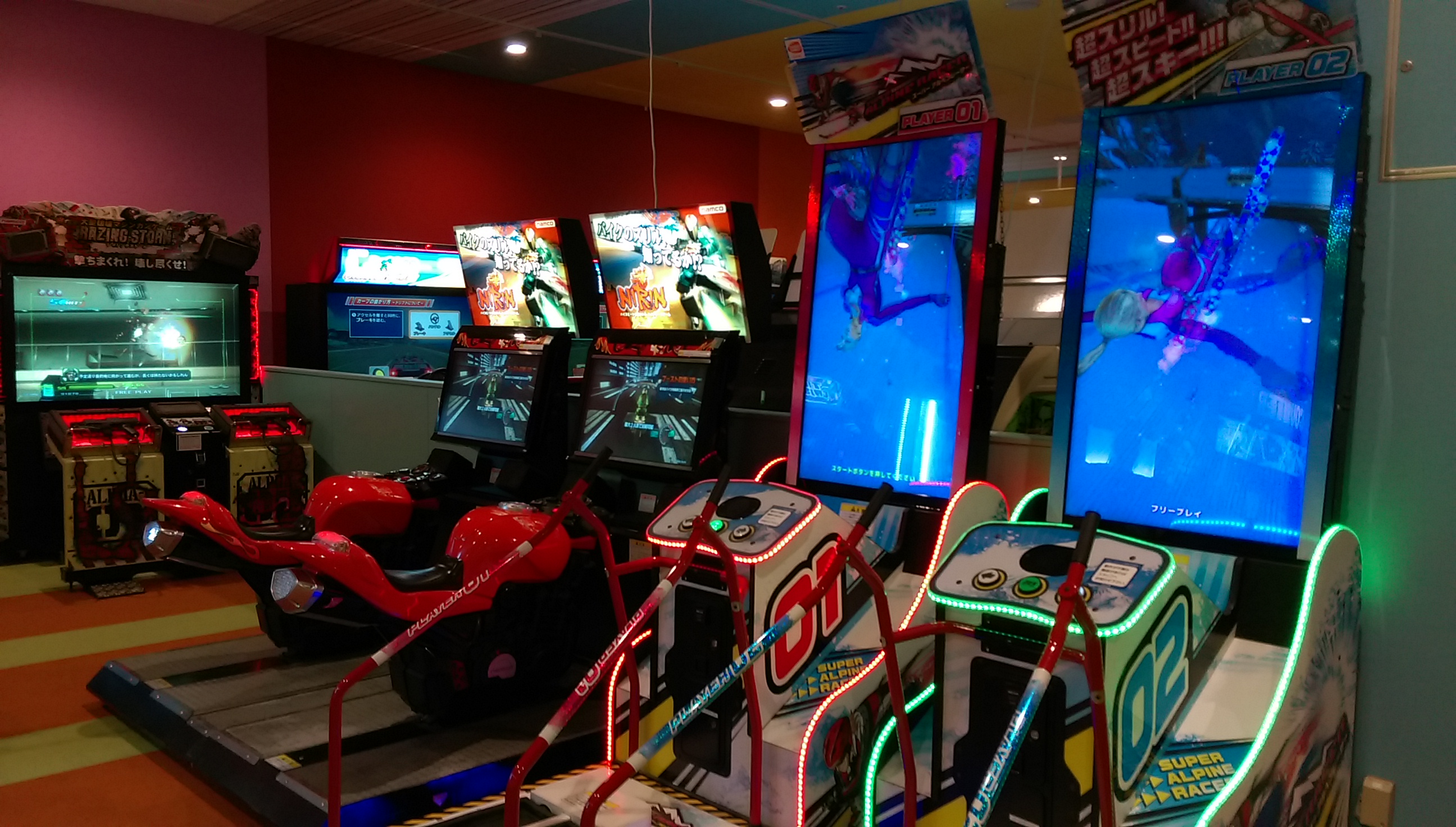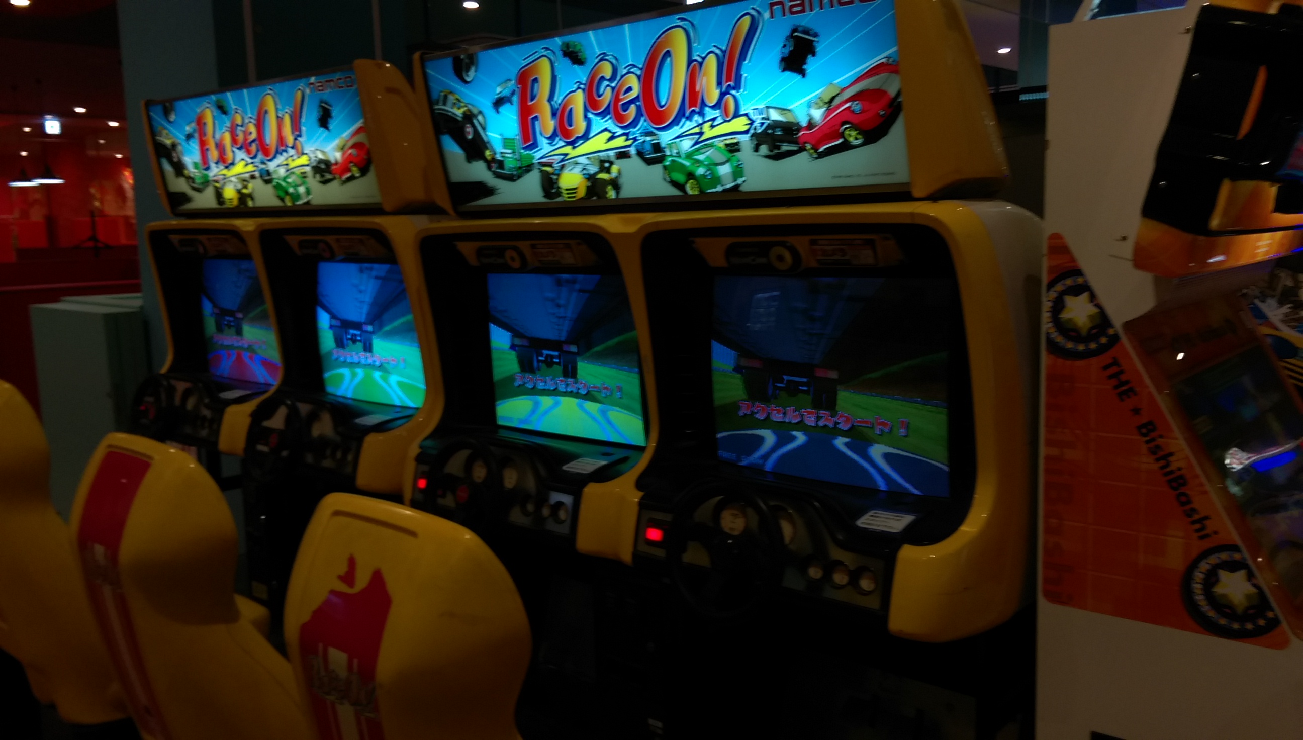 今回スポッチャの中にあるとは一ヶ月前から事前情報で知ってましたが、まさかDXまで置いてあるとは驚きの一言でした。さっとさんの筐体シリアルデータベースによればSPは初見(北海道R1白石店と連番)ながら、DXは三重県津市からやってきたとのこと。 筐体のコンディションとしてはSP2台ともシートのレールが無制限に下がってしまうのと、右側が勝手にアクセル全開で走り出すくらいで全体的には想像以上に良かったと言えます。 栗橋ほどではないですが休憩に使えそうなスペースもとい、俺をダメにするソファ。 個人的には更にこの2機種までもが同じフロアで遊べると言うのもとてもポイントが高いですね。 特にF-ZEROはSPに手を出す前に家庭用のF-ZERO GXを3年半近くやりこんでおりましたので、ただでさえ数が少ないのに稼動1年ちょっとで続々と姿を消していったDX筐体が近所でまたお目にかかれるのにはまさに感無量。筐体の派手な作りとパワードリフトから進化した振り子の可動部も備え、ゲーセンの体感ゲームとしても圧倒的存在感。音ゲーはもうお腹一杯なのでまた大型体感ゲームがリリースされる時代が来るといいのですが。 OutRun2SPとF-ZERO AX、どちらも2016年4月現在千葉県内で唯一の稼動店ですので大事にしていきたいと思います。 ~~~翌日~~~ 22日~24日までプレオープンで誰でも2時間500円につられてまた行ってまいりましたところ、今はなき地元の筐体そっくりな感触のステアで森を軽々抜けれてしまい自己ベストの全一から一秒落ち以内で繋がりました。長らくホーム不在でしたが今日からこいつがメイン台です、よろしくね。 以下、他にも珍しそうなタイトルが目白押しでしたので参考までに。 CommentsComment Form |